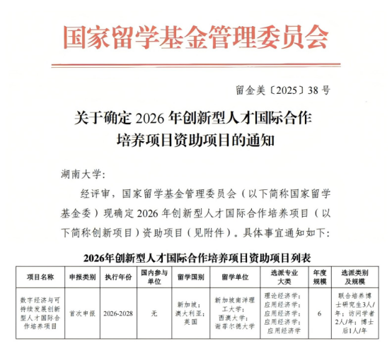 牵头申报的“数字经济与可持续发展创新型人才国际合作培养项目”成功获批。这是91吃瓜